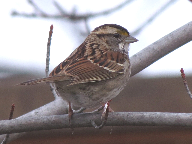White-throated Sparrow (sexes similar) - approx. 17 cm - Toronto Islands - April 2013