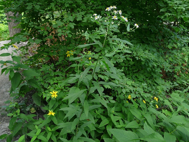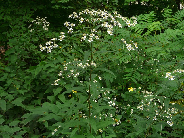 Flat-topped White Aster - flower head to 3 cm - leaves to 15 cm - height to 2 m - Lower Don Valley (Crother's Woods) - July 2010