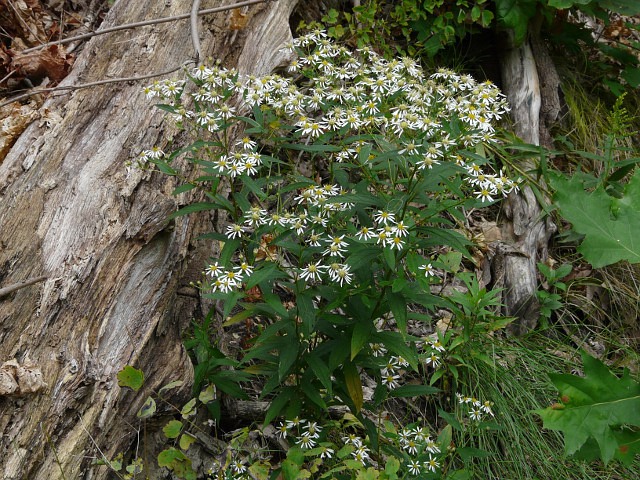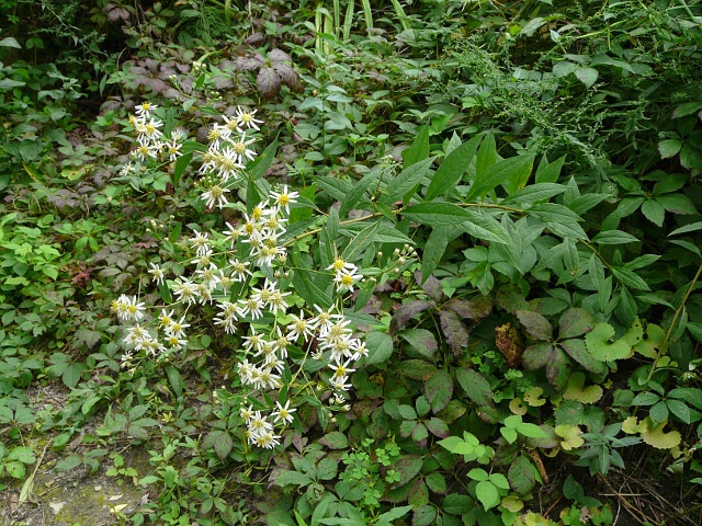 Flat-topped White Aster - flower head to 3 cm - leaves to 15 cm - height to 2 m - Lower Don Valley (Crother's Woods) - September 2010