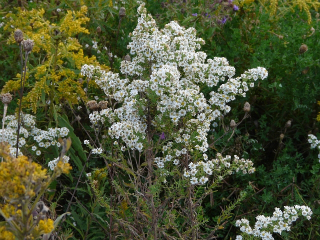 Heath Aster - flower head approx. 1 cm - leaves to 6 cm - height to 1 m - Humber Bay Park - September 2009