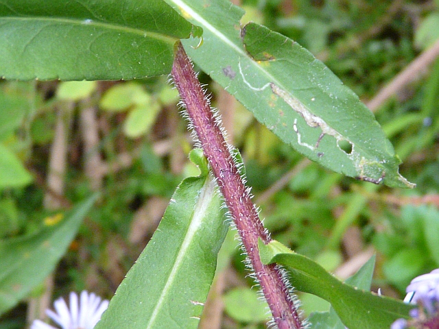 Purple-stemmed Aster - flower head to 3 cm - leaves to 15 cm - height to 2 m - Uxbridge - September 2013