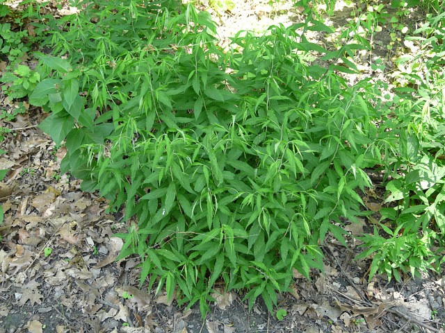 Blue-stemmed Goldenrod - flower head approx. 5 mm - leaves 6 to 12 cm - height to 90 cm - Lower Don Valley (Leaside) - May 2011