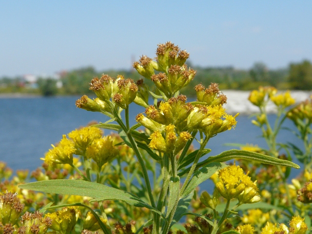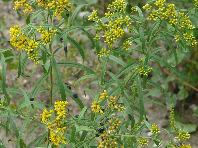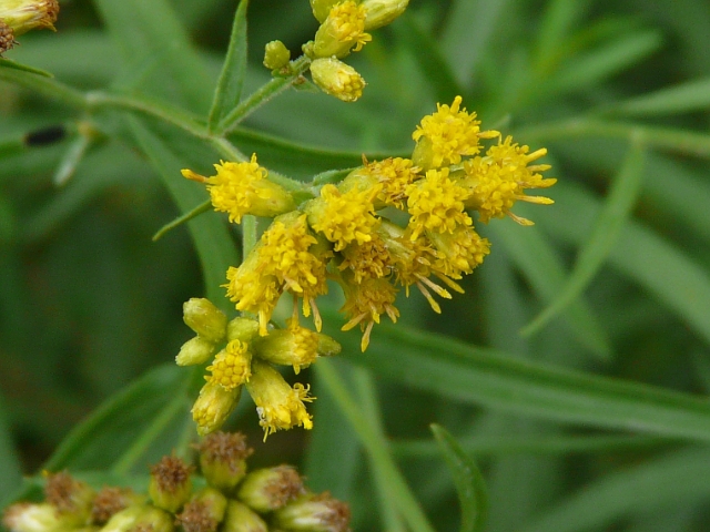 Grass-leaved Goldenrod - flower head approx. 5 mm - leaves 4 to 13 cm - height to 1.5 m - Lower Don Valley (Crother's Woods) - August 2010