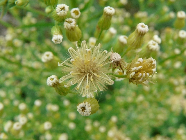 Canada Fleabane - flower head to 5 mm - leaves to 10 cm - height to 1.5 m - Leslie Spit - September 2009