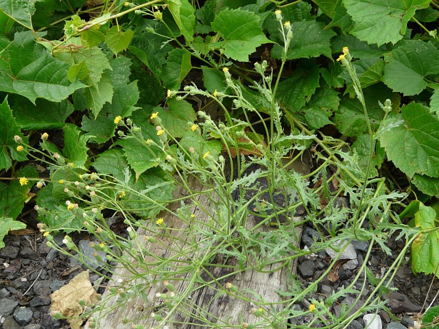 Ragwort - flower head approx. 1 cm - leaves to 6 cm - height to 40 cm - Lower Don Valley (Crother's Woods) - August 2010