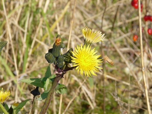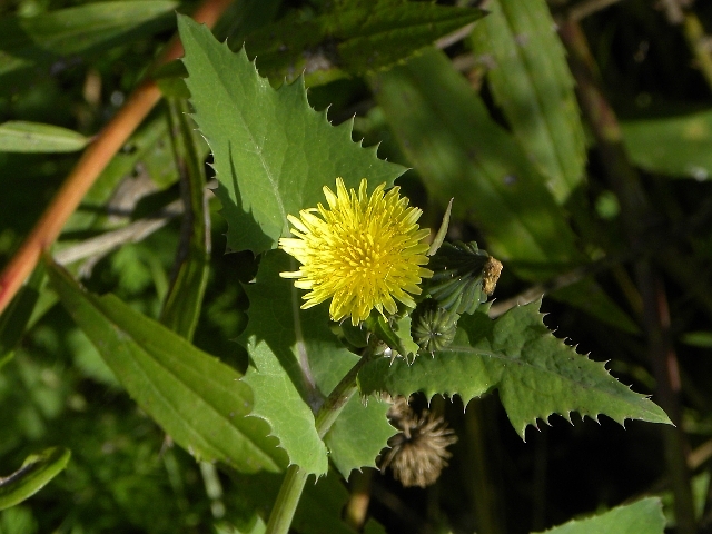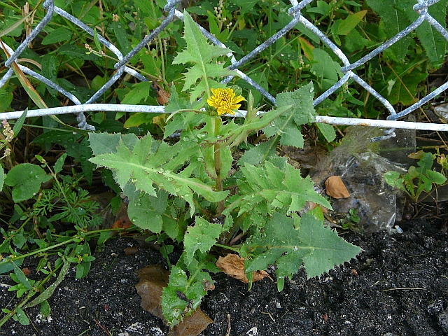 Common Sow Thistle - flower head approx. 2.5 cm - leaves to 25 cm - height to 1 m - Lower Don Valley (Leaside) - November 2009