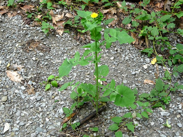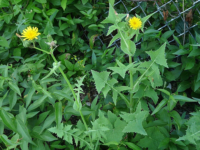 Common Sow Thistle - flower head approx. 2.5 cm - leaves to 25 cm - height to 1 m - Lower Don Valley (Crother's Woods) - August 2010