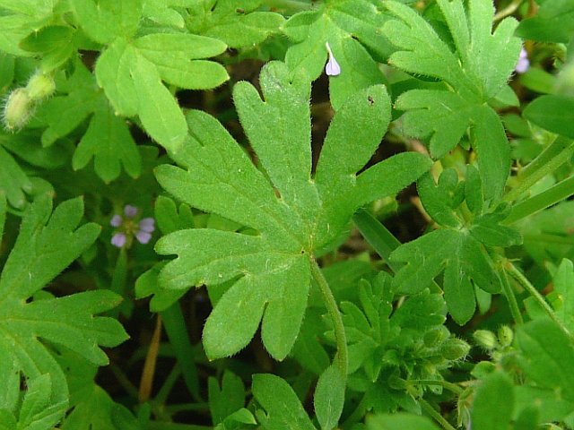 Small-flowered Cranesbill - flower approx. 6 mm - fruit approx. 1 cm - leaf to 4 cm - height to 30 cm - Etobicoke Valley Park - June 2013