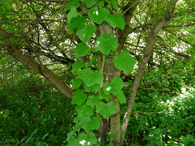 Common Moonseed - flower approx. 4 mm - fruit approx. 1 cm - leaves to 20 cm - vine to 4 m - Lower Don Valley (Leaside) - July 2010