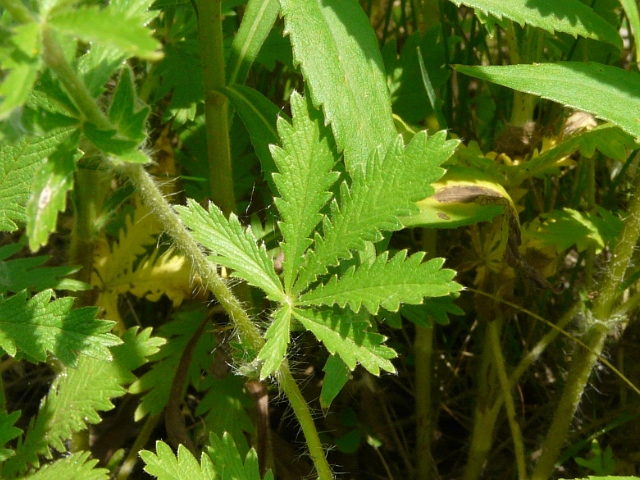 Rough-fruited Cinquefoil - flower approx. 2 cm - leaflets 3 to 14 cm - height to 80 cm - Lower Don Valley (Crother's Woods) - June 2010