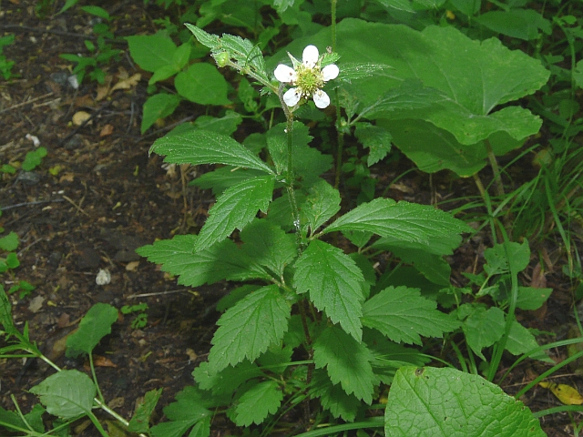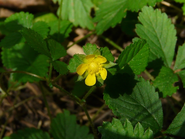 Indian Strawberry - flower approx. 2 cm - leaflets 2 to 7.5 cm - height to 7.5 cm (creeper) - Humber Valley (Humber Arboretum) - August 2010