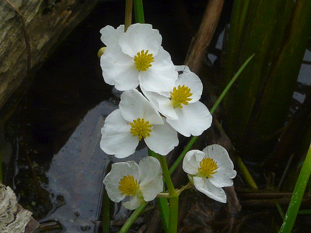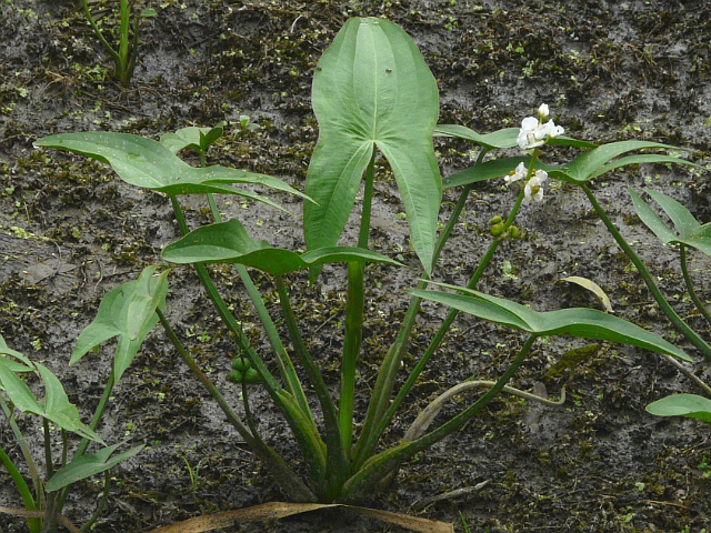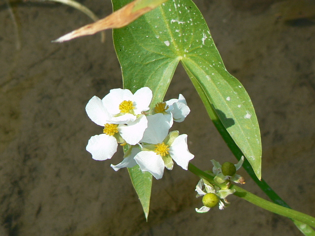 Broad-leaved Arrowhead - flower 2 to 4 cm - leaves 5 to 40 cm - height to 1.2 m (above water) - Lower Don Valley (Brickworks) - August 2009