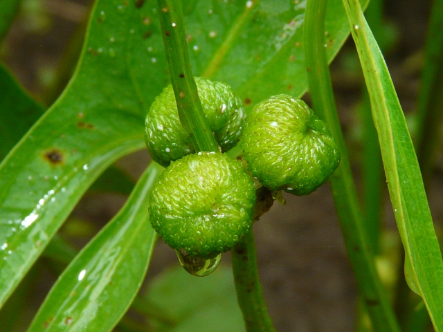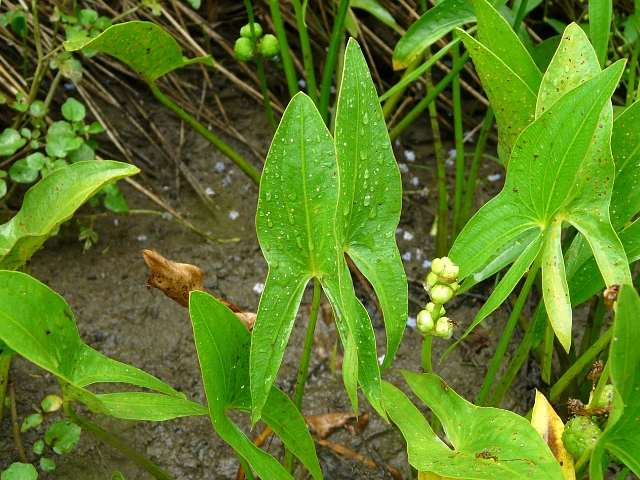 Broad-leaved Arrowhead - fruit to 3 cm - flower 2 to 4 cm - leaves 5 to 40 cm - height to 1.2 m (above water) - Rouge Park - July 2012