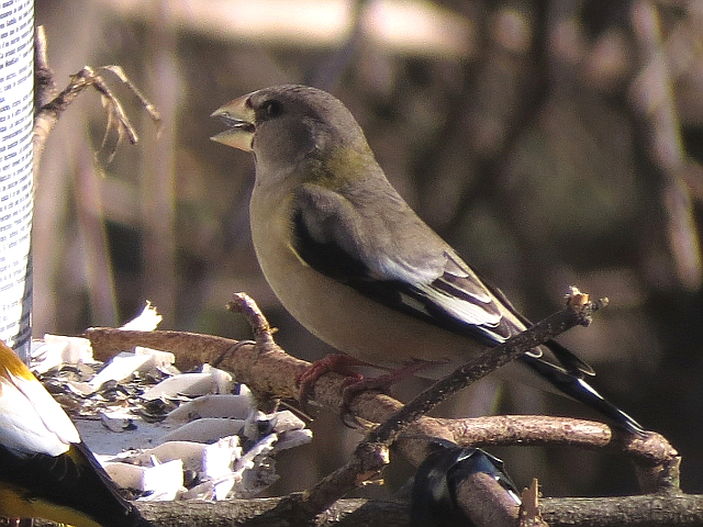 Evening Grosbeak (female) - approx. 18 cm - High Park - January 2015