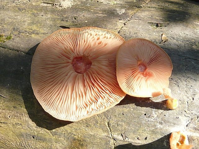 Netted Rhodotus - cap to 5 cm - stalk to 5 cm -