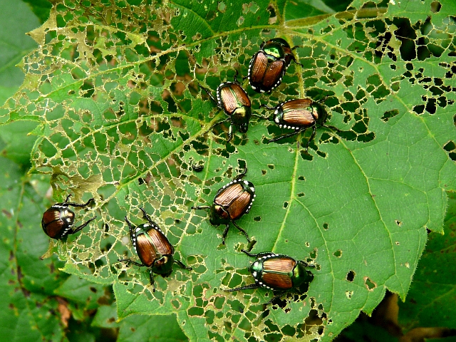 leaf eaten by Japanese Scarab Beetles - West Don Valley (