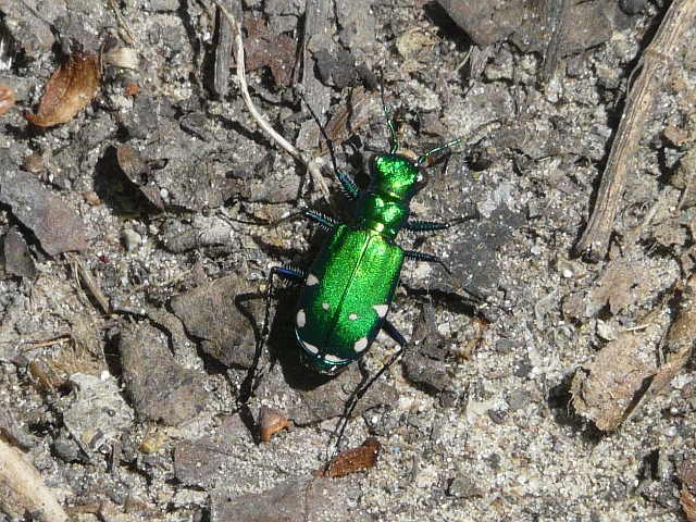 Six-spotted Tiger Beetle - approx. 1.3 cm - Lower Don Valley (Crother's Woods) - May 2009