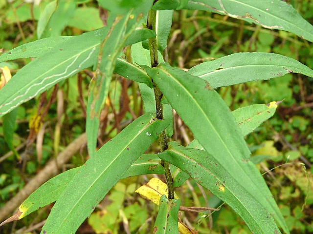 Purple-stemmed Aster - flower head to 3 cm - leaves to 15 cm - height to 2 m - Uxbridge - September 2013