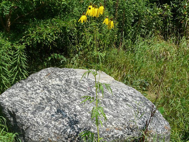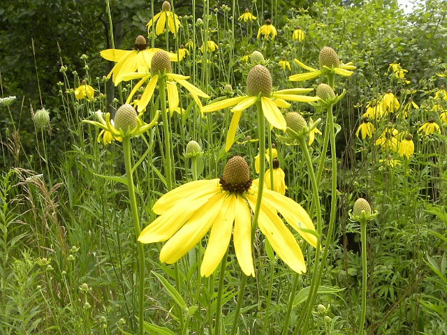 Gray-headed Coneflower - flower head to 10 cm - leaves to 20 cm (decreasing with height) - height to 1.5 m - Lower Don Valley (Brickworks) - August 2010