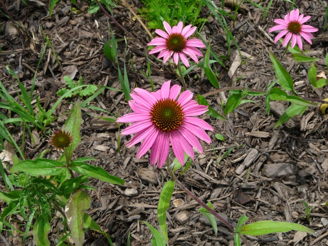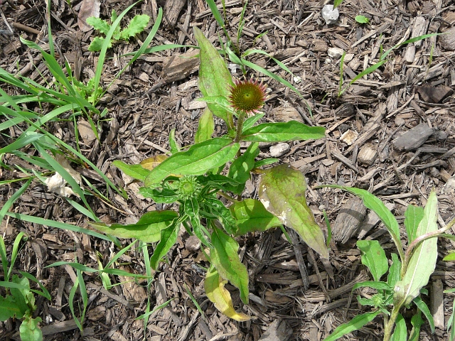 Purple Coneflower - flower head to 10 cm - leaves to 15 cm (decreasing with height) - height to 1.5 m - Rouge Park - July 2012