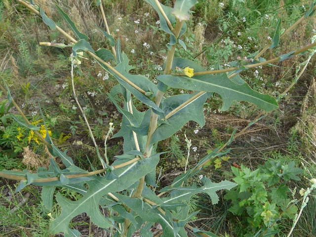 Prickly Lettuce - flower head to 1 cm - leaves 5 to 30 cm - height to 1.5 m - High Park - July 2010