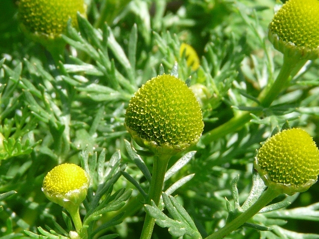 Pineapple Weed - flower head 5 to 10 mm - leaves to 5 cm - height to 40 cm - Thorncliffe Park - July 2015