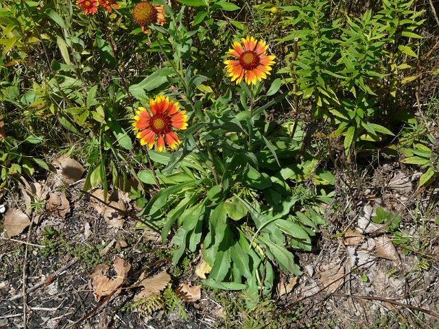 Indian Blanket - flower head to 7.5 cm - leaves to 7.5 cm - height to 40 cm - Leslie Spit - August 2010