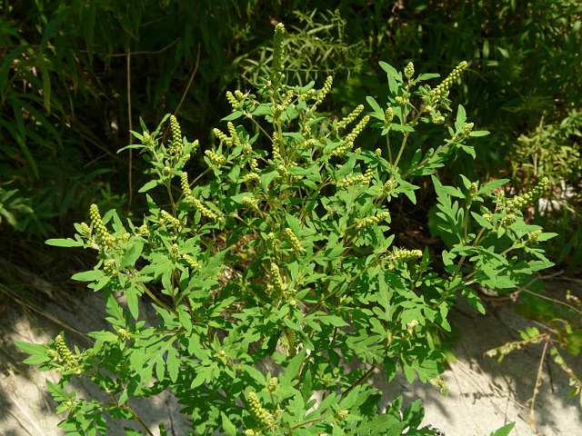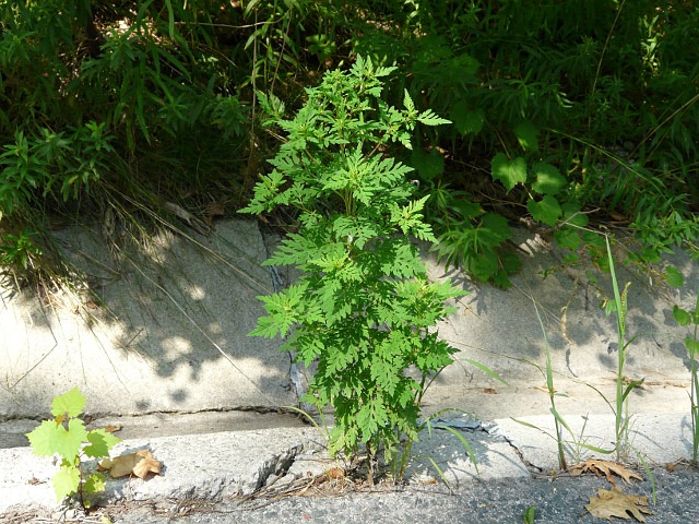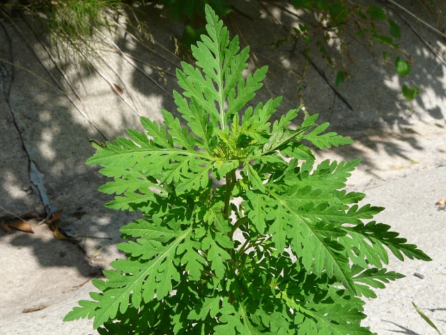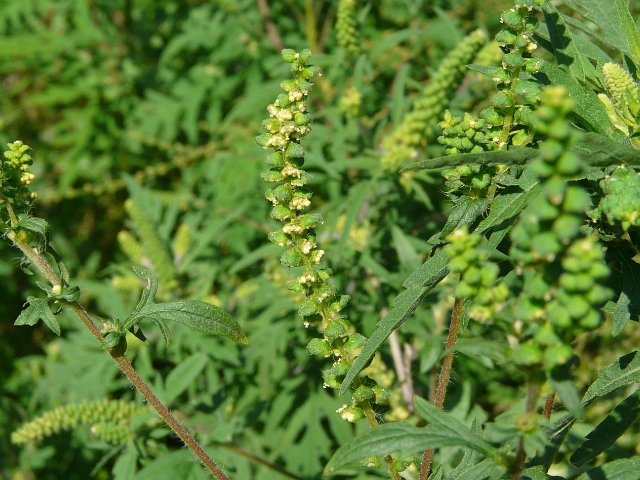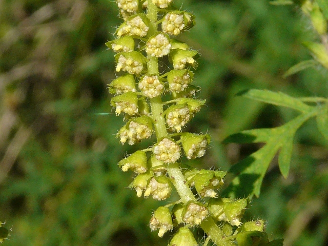 Common Ragweed - flower head approx. 5 mm - raceme to 15 cm - leaves to 10 cm - height to 1 m - Lower Don Valley (Crother's Woods) - July 2010