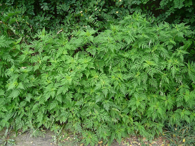 Common Ragweed - flower head approx. 5 mm - raceme to 15 cm - leaves to 10 cm - height to 1 m - Lower Don Valley (Crother's Woods) - August 2010