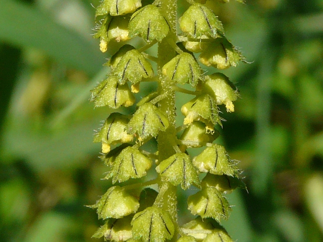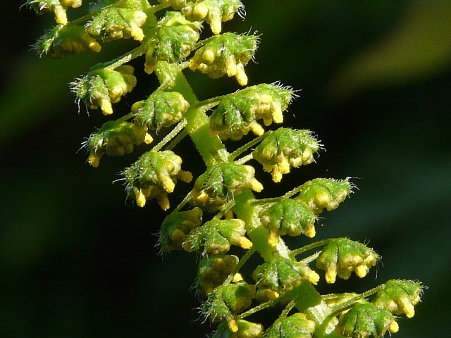 Giant Ragweed - flower head approx. 5 mm - raceme to 25 cm - leaves to 20 cm - height to 4.5 m - Lower Don Valley (Leaside) - August 2010