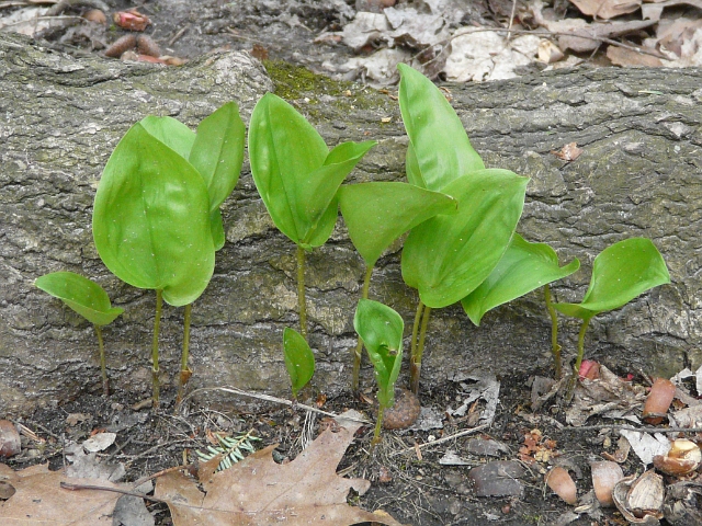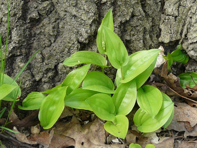 Canada Mayflower - flower 3 to 5 mm - raceme to 2.5 cm - leaves 3 to 10 cm - height to 20 cm - Humber Valley (Lambton Woods) - April 2010