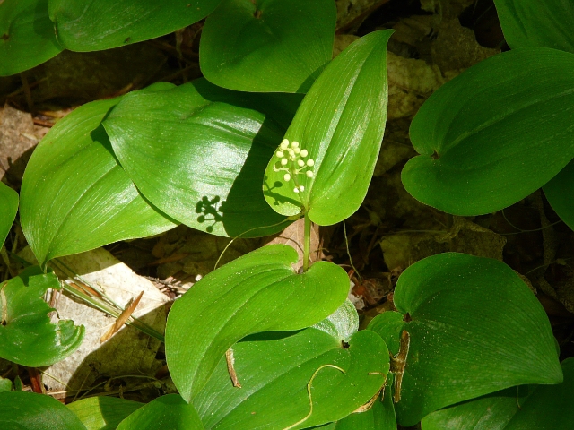 Canada Mayflower - flower 3 to 5 mm - raceme to 2.5 cm - leaves 3 to 10 cm - height to 20 cm - Humber Valley (Lambton Woods) - May 2015