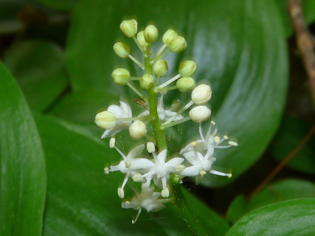 Canada Mayflower - flower 3 to 5 mm - raceme to 2.5 cm - leaves 3 to 10 cm - height to 20 cm - West Don Valley (Wilket Creek Park) - May 2011
