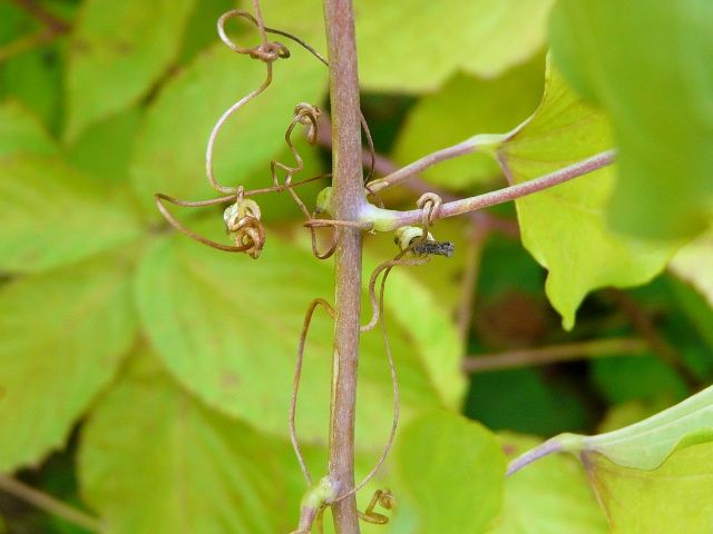 Smooth Carrion Flower - flower approx. 7 mm - fruit approx. 1 cm - leaves to 9 cm - non-woody vine to 2.5 m - High Park - June 2015