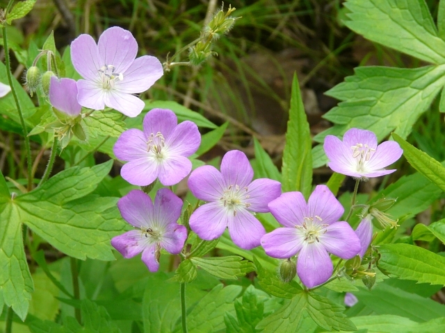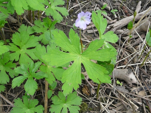 Wild Geranium - flower 2.5 to 4 cm - leaves 10 to 13 cm - height to 70 cm - Marie Curtis Park - May 2009