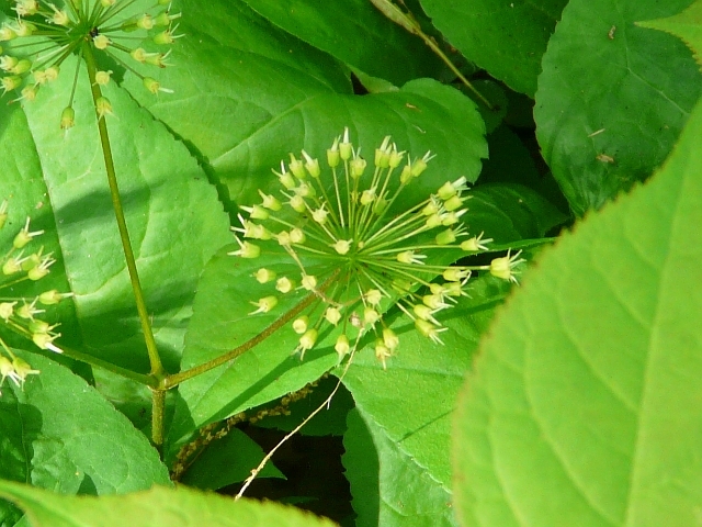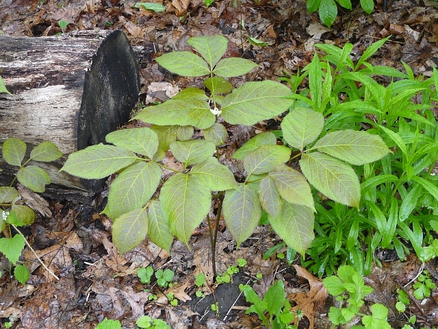 Wild Sarsaparilla - umbel 3 to 5 cm - leaflet 10 to 15 cm - height to 60 cm - High Park - May 2009