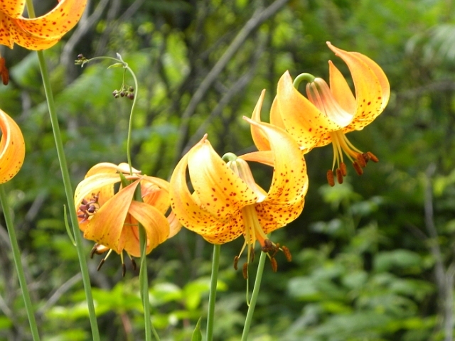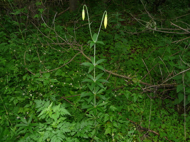 Michigan Lily - flower approx 7.5 cm wide, 10 cm long - leaves to 15 cm - height to 2 m - Lower Don Valley (Crother's Woods) - July 2009