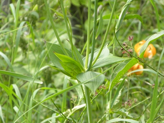 Michigan Lily - flower approx 7.5 cm wide, 10 cm long - leaves to 15 cm - height to 2 m - Etobicoke Valley Park - June 2013