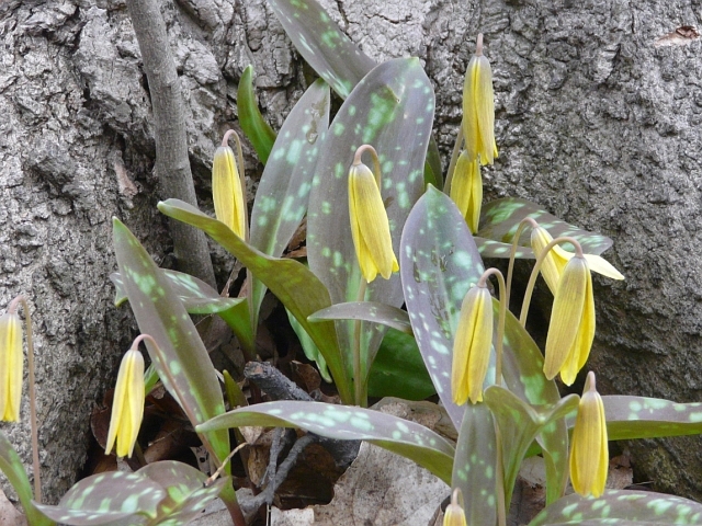 Trout Lily - flower approx 2.5 cm - leaves 5 to 20 cm - height to 20 cm - Lower Don Valley (Crother's Woods) - April 2009