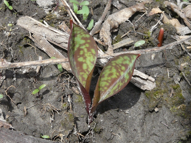 Trout Lily - flower approx 2.5 cm - leaves 5 to 20 cm - height to 20 cm - Rattray Marsh (Mississauga) - April 2009