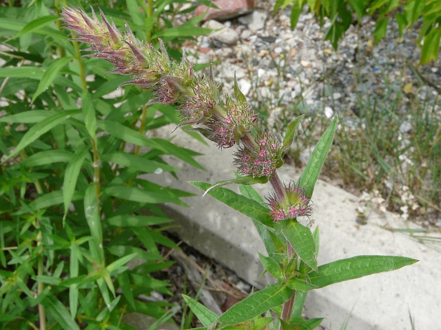 Purple Loosestrife - flower approx. 2 cm - spike 10 to 40 cm - leaves 3 to 10 cm - height to 1.5 m - Ashbridge's Bay - July 2010