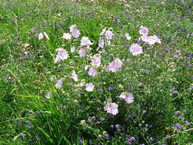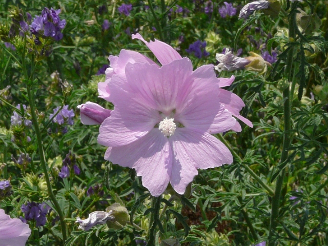 Musk Mallow - flower approx. 5 cm - leaves 7 to 10 cm - height to 1 m - Leslie Spit - August 2011