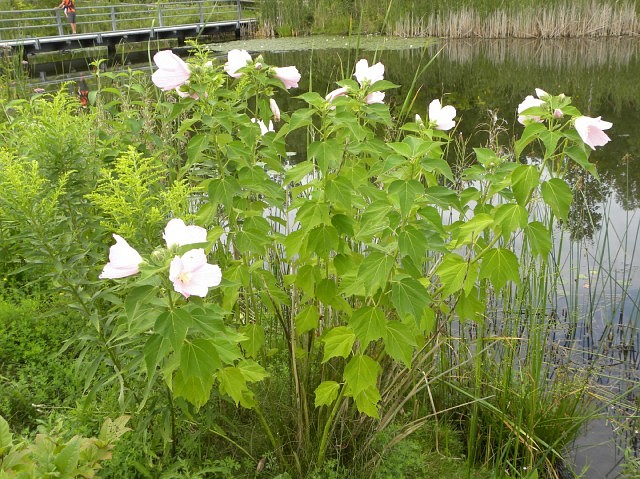 Swamp Rose Mallow - flower 10 to 15 cm - leaves 10 cm - height to 2.5 m - Lower Don Valley (Brickworks) - August 2009