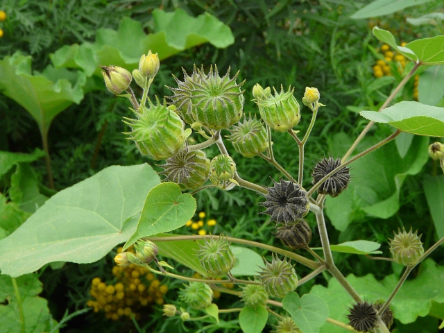 Velvet-leaf - flower approx. 2 cm - leaves 7 to 20 cm - height to 1.5 m - Lower Don Valley (Crother's Woods) - August 2010