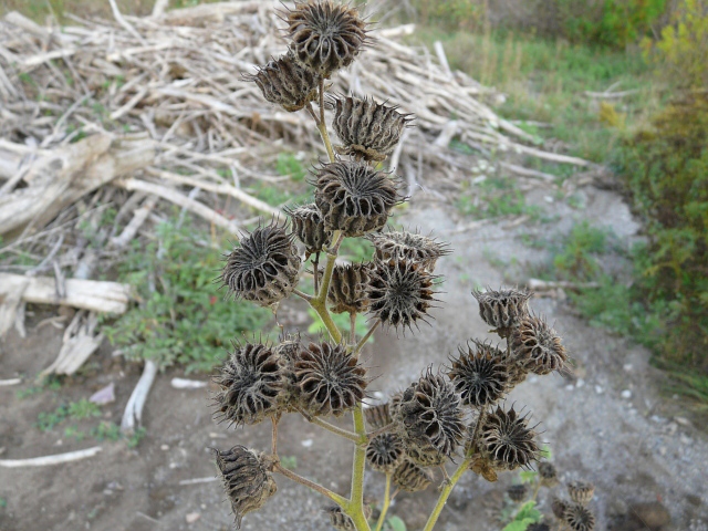 Velvet-leaf - flower approx. 2 cm - leaves 7 to 20 cm - height to 1.5 m - Leslie Spit - October 2007