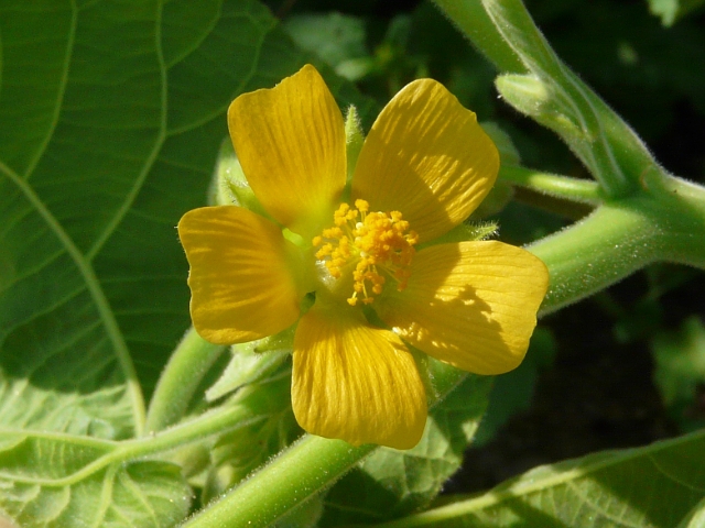 Velvet-leaf - flower approx. 2 cm - leaves 7 to 20 cm - height to 1.5 m - East Don Valley (Milne Hollow) - July 2011
