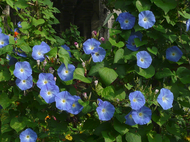 Tall Morning Glory - flower 5 to 7.5 cm long - leaves 5 to 12.5 cm - vine to 3 m - University of Toronto (Hart House) - August 2015