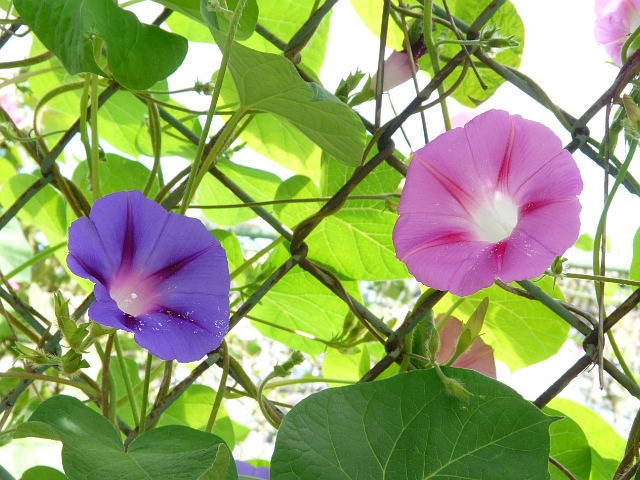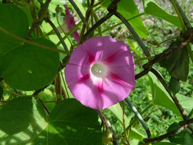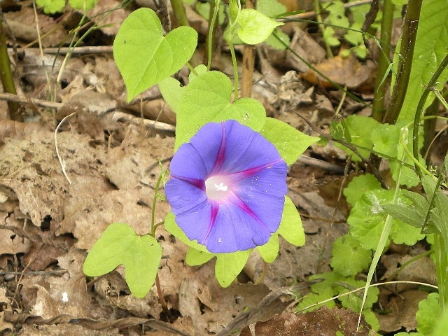 Tall Morning Glory - flower 5 to 7.5 cm long - leaves 5 to 12.5 cm - vine to 3 m - Thorncliffe Park - August 2010