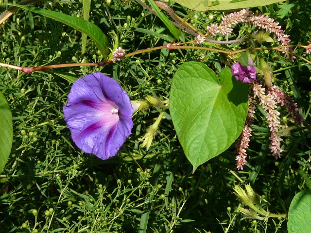 Tall Morning Glory with Pale Smartweed - flower 5 to 7.5 cm long - leaves 5 to 12.5 cm - vine to 3 m - Lower Don Valley (Crother's Woods) - September 2010