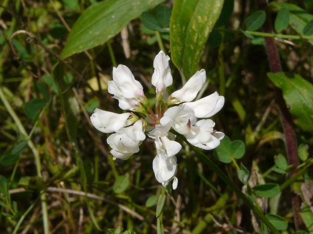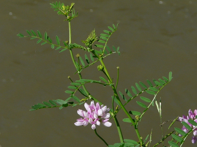 Crown Vetch - flower 1 to 1.5 cm - flower head to 2.5 cm - fruit 2 to 5 cm - leaves approx. 11 to 21 leaflets 1.5 to 2 cm - vine to 50 cm - Toronto Islands - October 2008